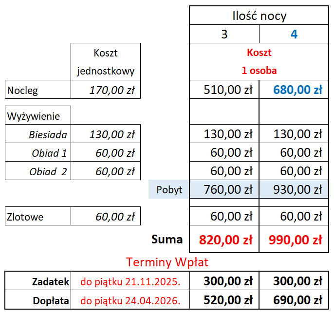 Tytuł przelewu : Zlot2026 Imię i Nazwisko