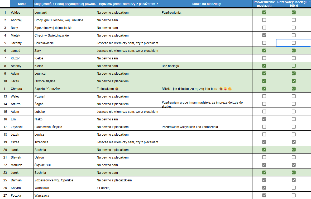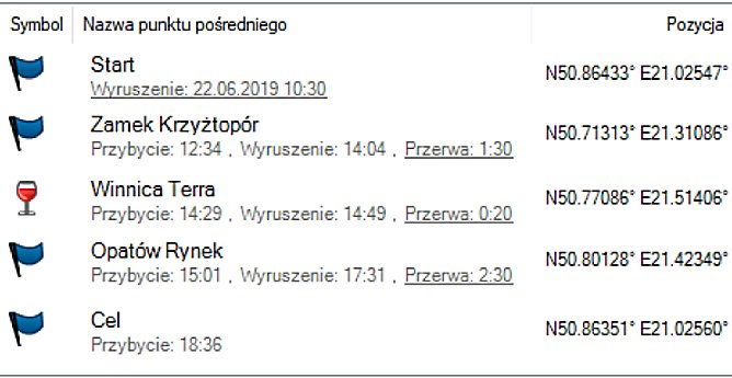 Jakbyś chciał gdzieś dołączyć na trasie do nas, to ta tabelka z danymi postojów może Ci się przydać.